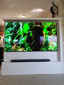 מסך OLED 77 אינץ' של חברת LGלקוחות חוזרים מרגשים אותי כל פעם מחדש !זו מין חותמת של אמון מתמשך ..כך עם משפחת נ' שרכשו מערכת מולטימדיה לפני עשר שנים!ובאו להתחדש..והנה התוצאה ! על התמונה -אל ג'י אולד 77אינץ טופ! על הסאונד -אל ג'י מקרן סאונד בשיתוף מרידיאן כולל סראונדים.. נגרותצפייה -